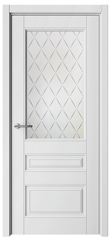 Дверь Классика-3 ширина 90 см Белый Эмаль Стекло мателюкс "Лорд матовое" в Вольске